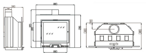 Material: kolstål, keramiskt glas (märkt NEG eller Schott), högtemperaturbeständig färg (märkt Forest)